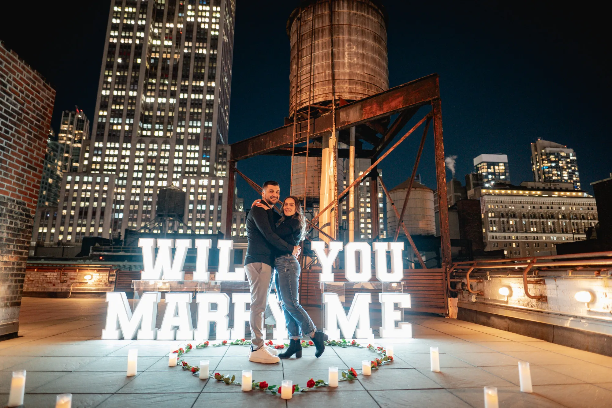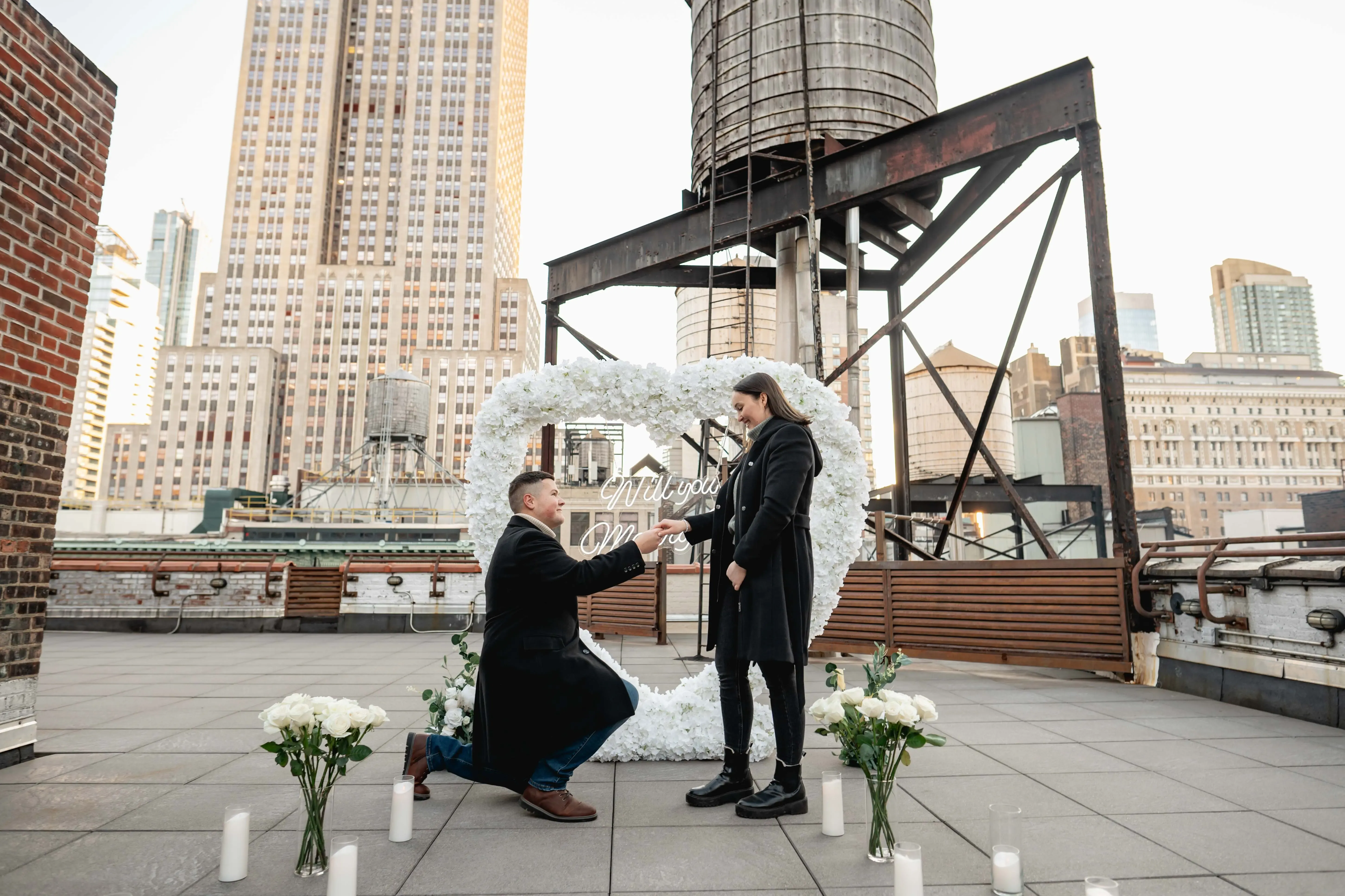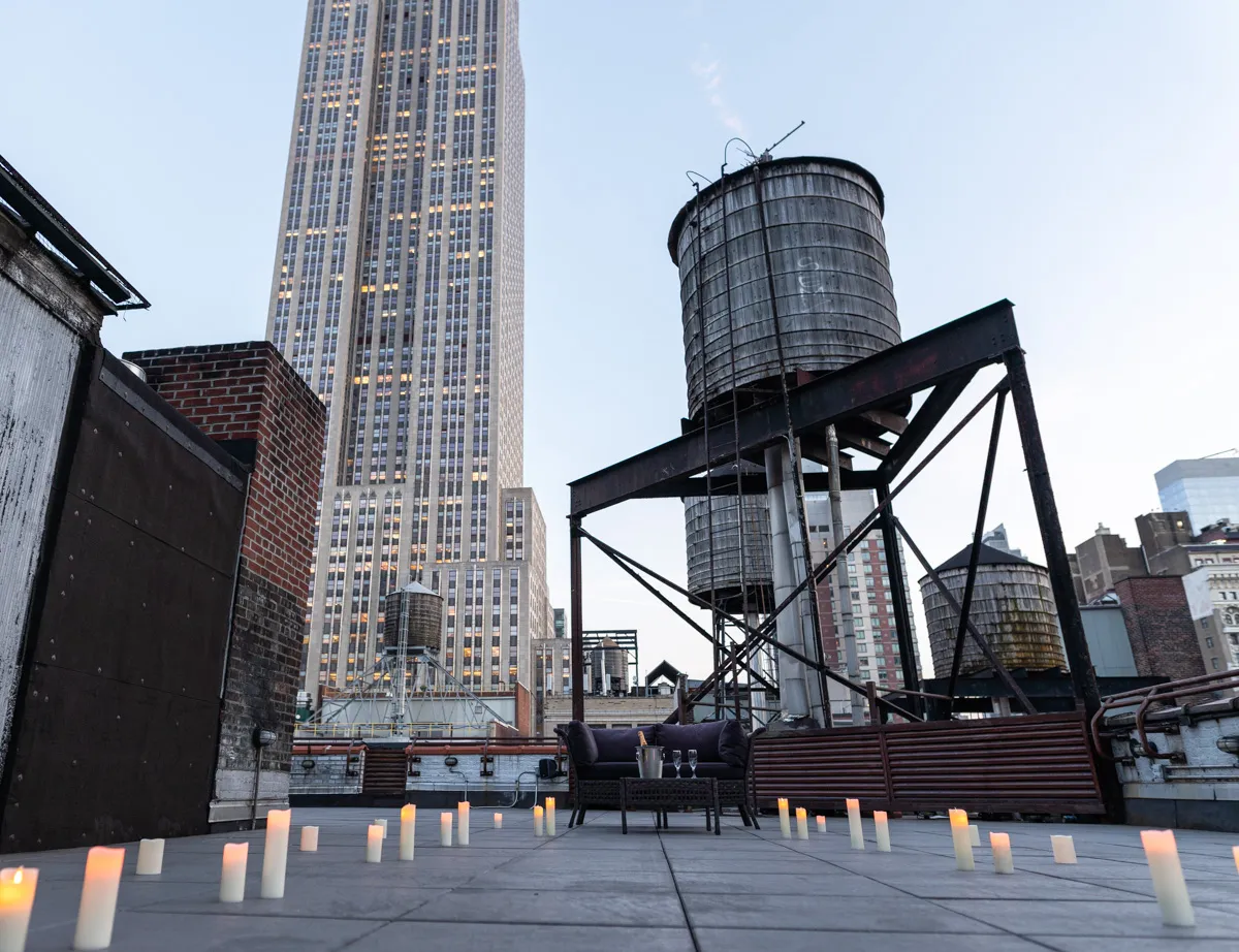 Empire State Building view rooftop is an amazing place located right in the middle of the city. This is an open space rooftop with an iconic New York water tower. The roof is glowing at night with the city lights. Surprise your significant one with the private Empire State Building view rooftop proposal, pop the question with the whole city in your background, and slow dance under the city lights.