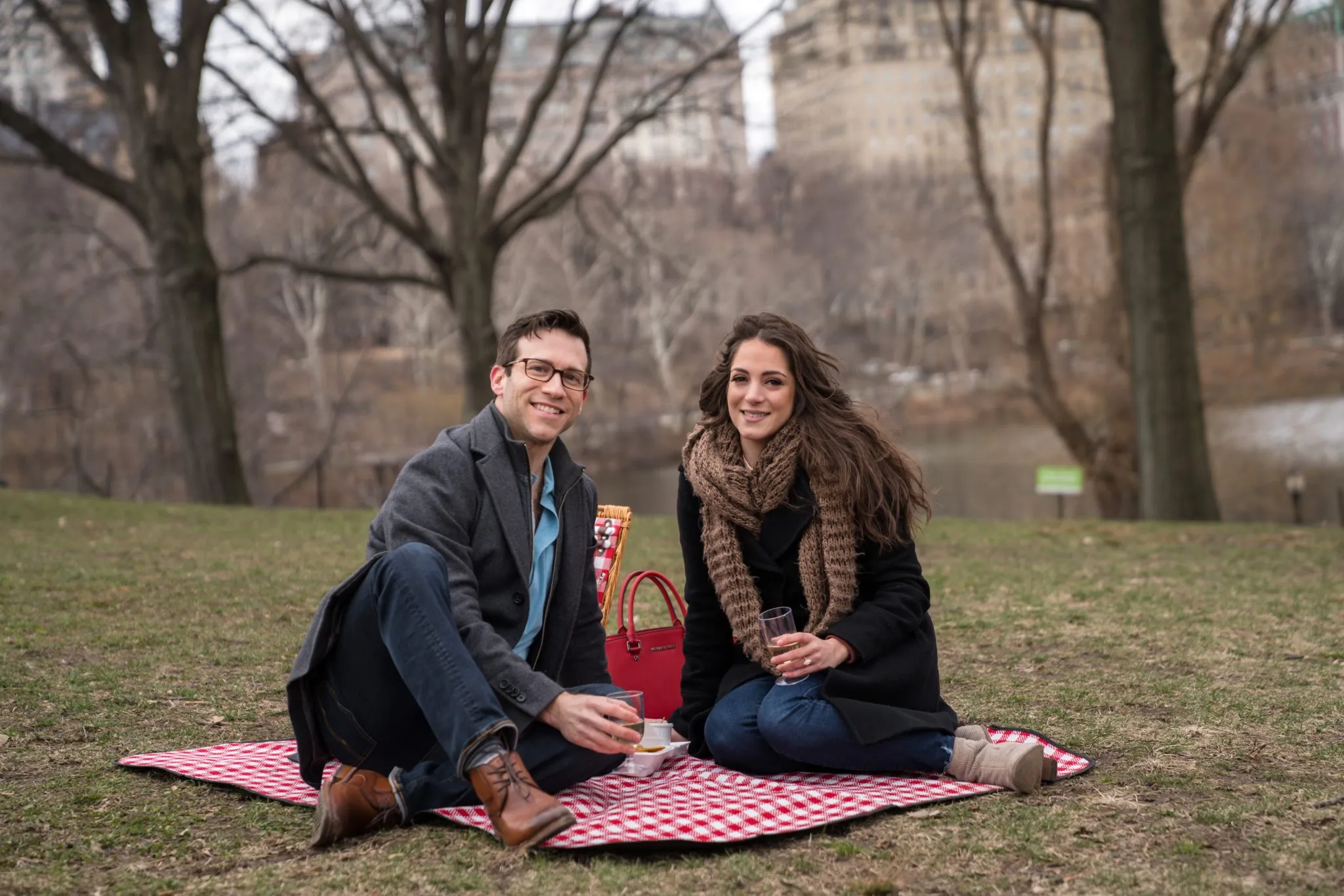 Propose to your partner over a romantic picnic in Central Park and then surprise her even more with the secret engagement photo session.