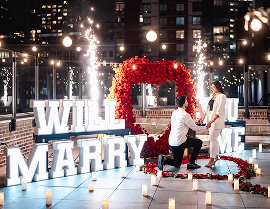 Choose from a variety of stunning locations, including parks and exclusive private rooftops. Our all-inclusive packages are flexible, allowing you to add different add-ons to create the perfect proposal experience