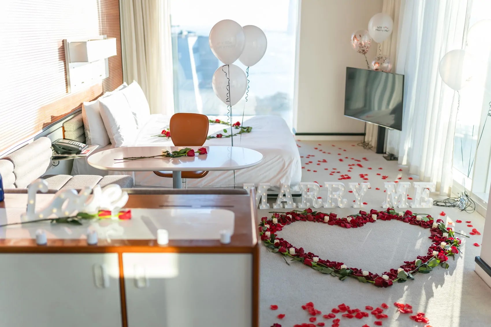 This is our special winter proposal package in New York. Crafted for couples, who appreciate the privacy and comfort of their own room. Imagine checking in the hotel and finding your room completely transformed with decorations, candles, and pictures of the two of you. This proposal idea is perfect for the cold winter months and your partner will definitely be taken by surprise. This package is also great with the musician added to it.