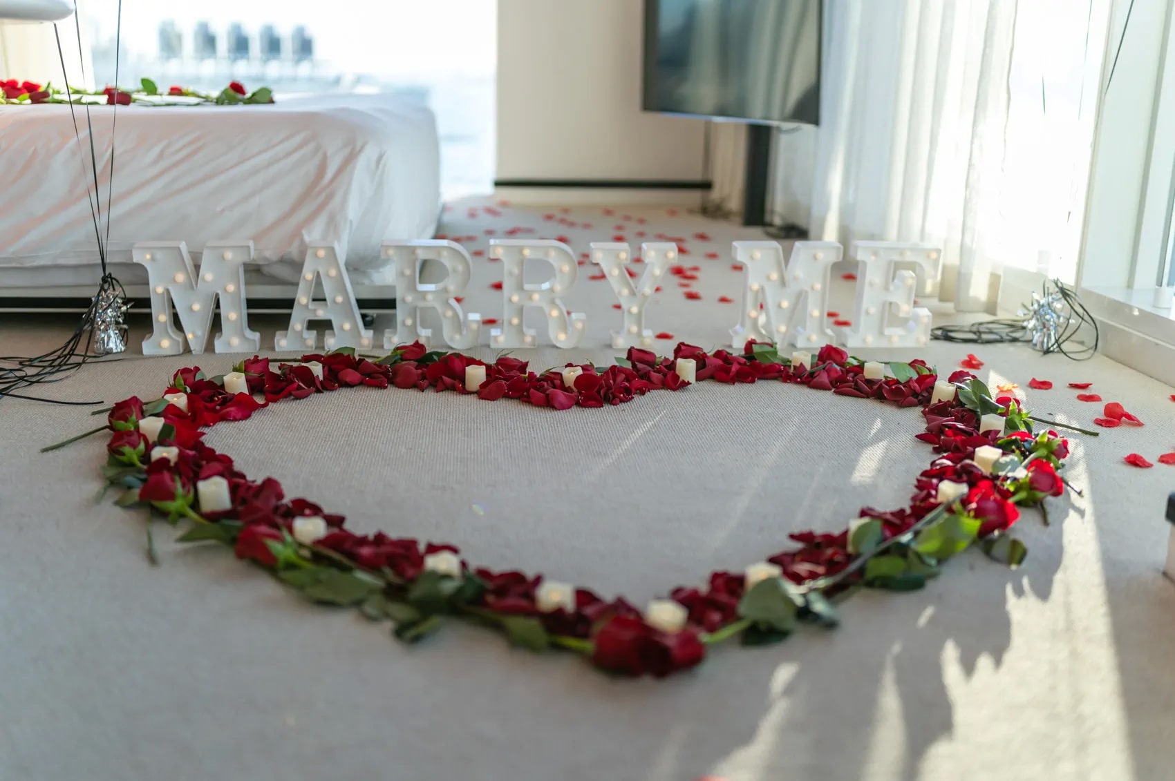 Make sure you let the front desk know that there will be a proposal and someone will come to decorate the room. In this case friends, family, and the proposal team will get into the room while you out and transform it. All you will need to do is just to be back in the room on time and surprise your partner with the stunning proposal.