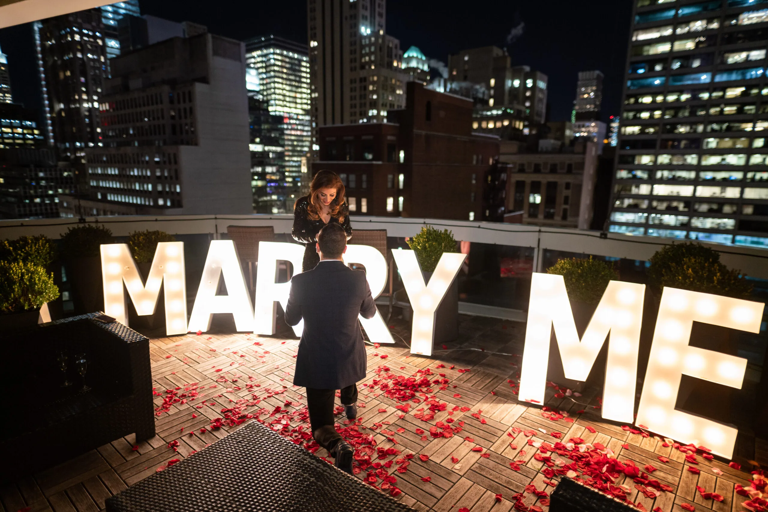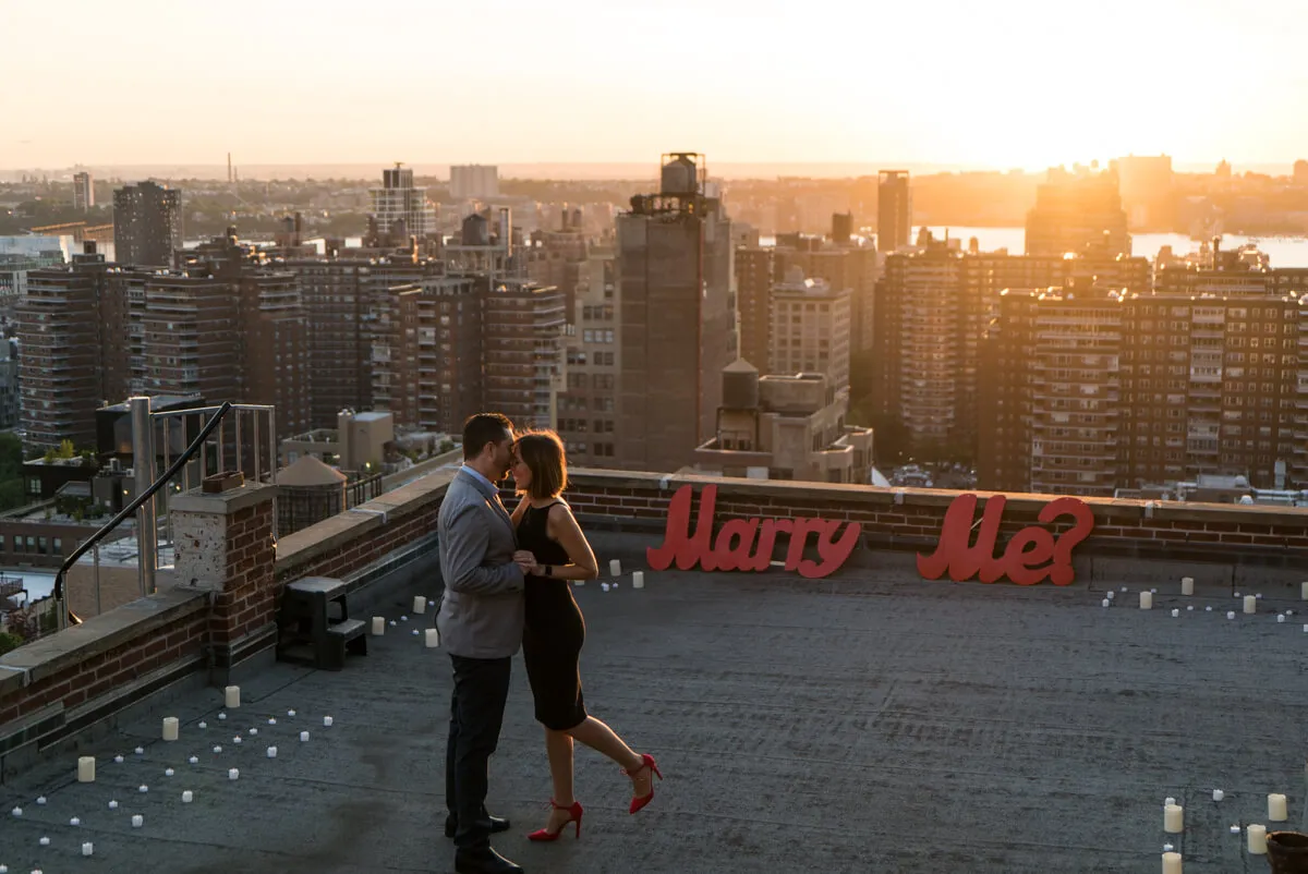 My parents’ wedding anniversary is in July, so Karan arranged for them to come into the city to take me to dinner and celebrate their anniversary on July 29th. They told me their friend who is a chef had booked a space and was going to cook them an anniversary dinner. When we arrived at the lobby of the venue, my mom received a phone call from their dog sitter saying that their dog was sick and needed to be taken to the vet (which was a lie). I went upstairs alone while they dealt with the phone call and when I went upstairs I was taken to a terrace facing the Empire State Building and Karan was standing their behind his keyboard with a guitarist next to him and started playing and singing “Say You Won’t Let Go” by James Arthur. I cried through the whole song and once he was done he got down on one knee and proposed! He had a few friends and family members waiting at a nearby restaurant to congratulate and celebrate with us afterwards. (c) By Lydia McGuiniis