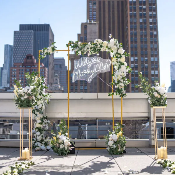 Surprise your partner with the luxury penthouse proposal. Located atop the iconic art deco building right off 5th avenue, this venue has three spectacular terraces and 180-degree views of the Manhattan skyline.