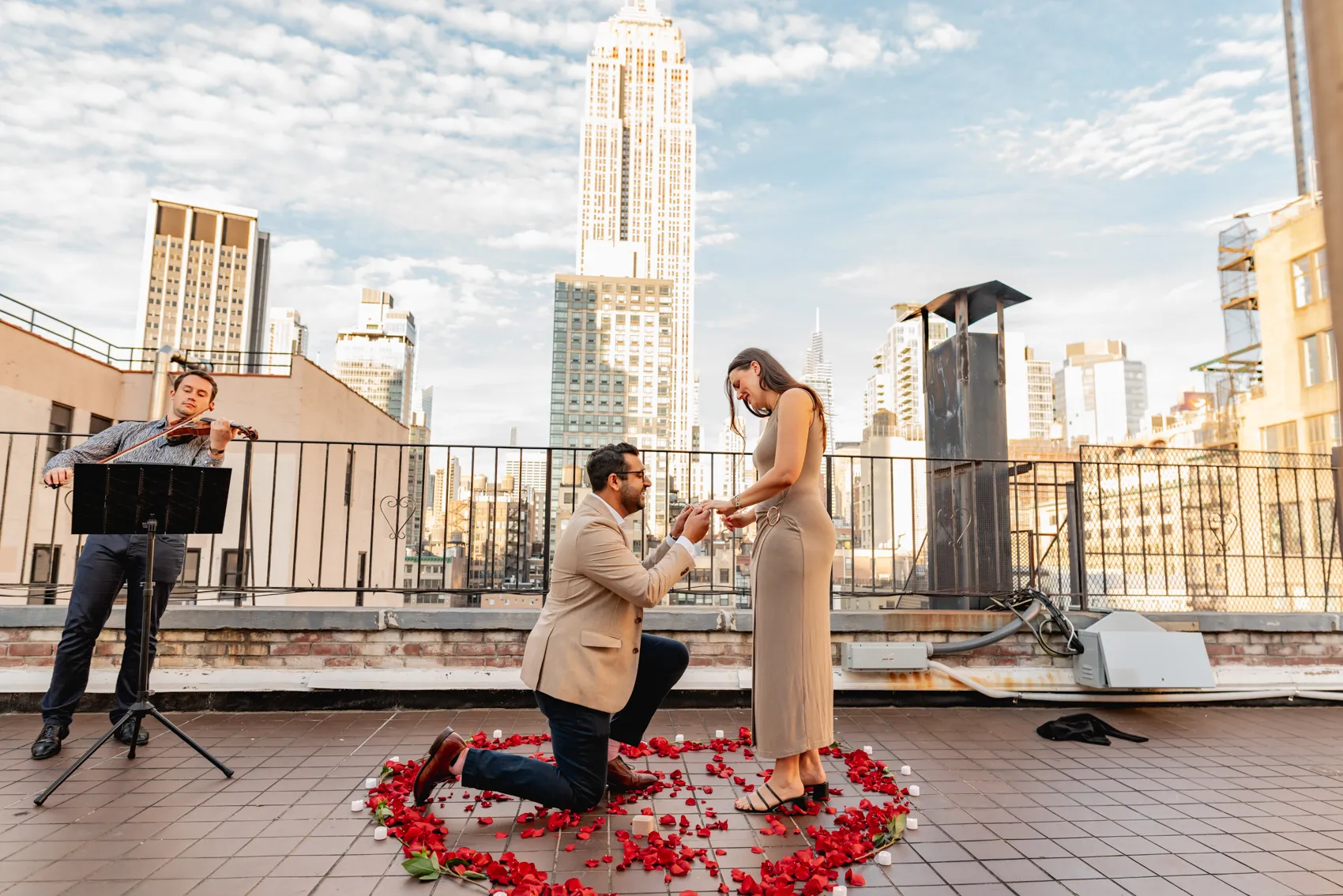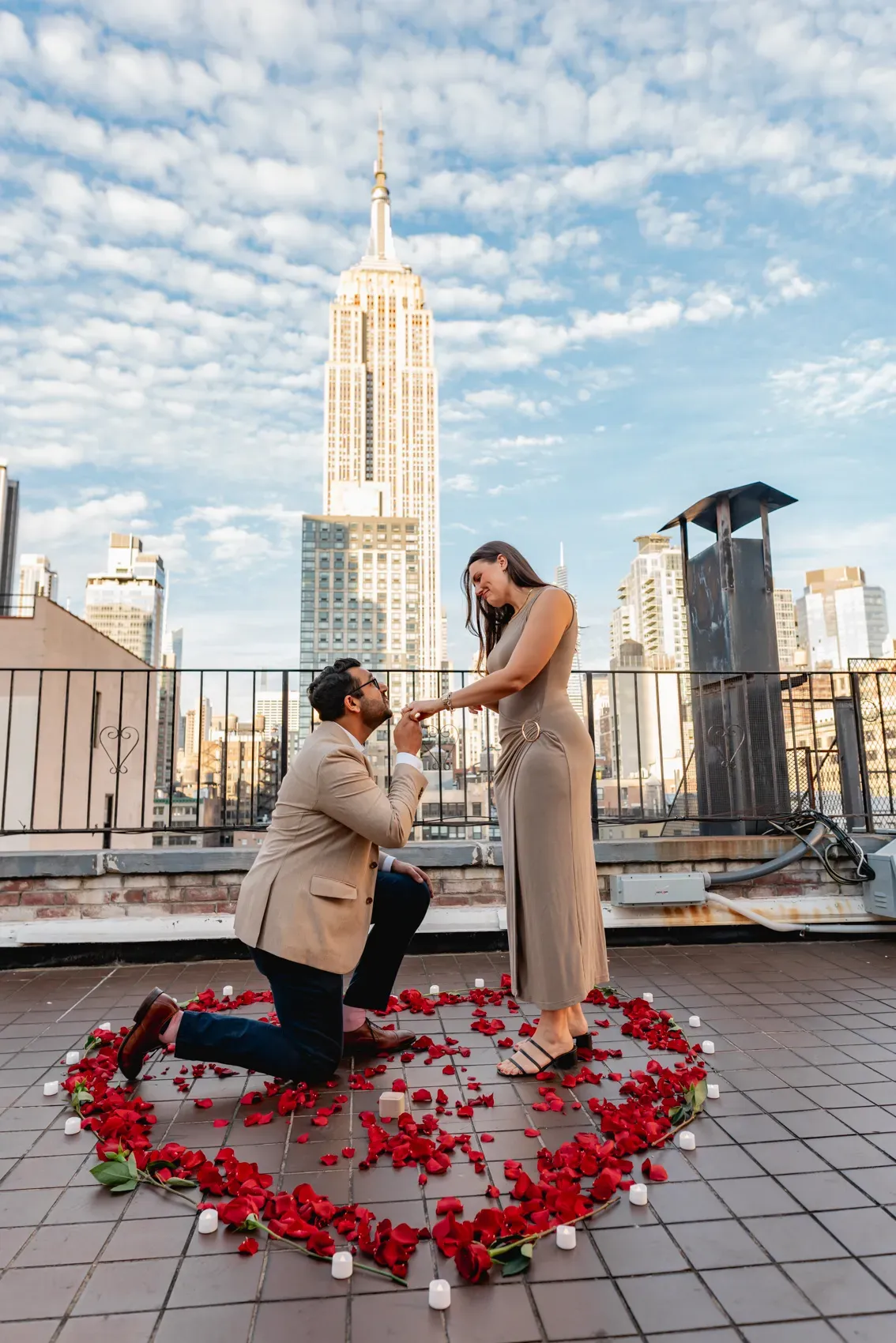 This beautiful city light rooftop is all you need for a romantic engagement. Located in the heart of New York City, the rooftop is facing the Empire State Building and surrounded by the city lights.