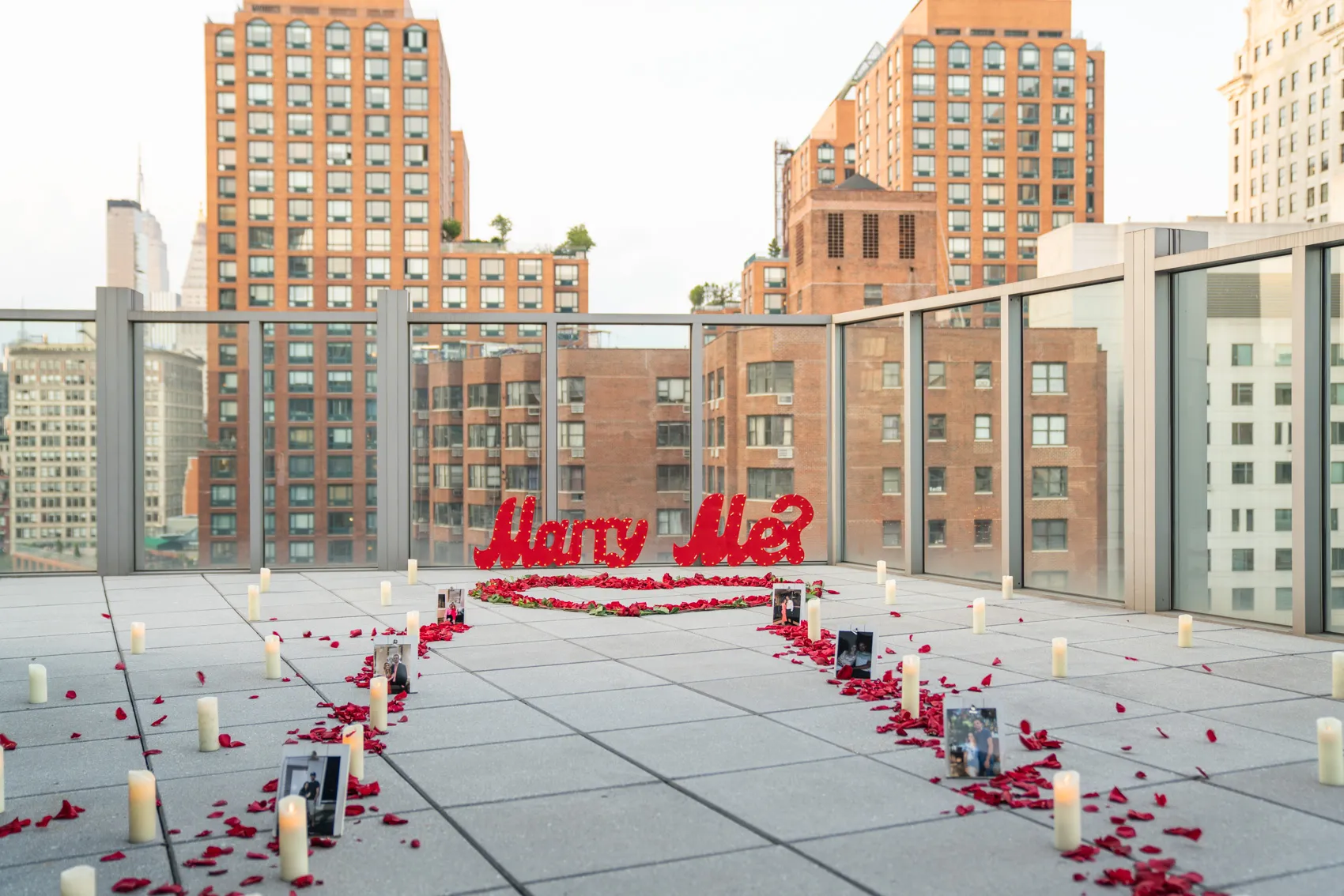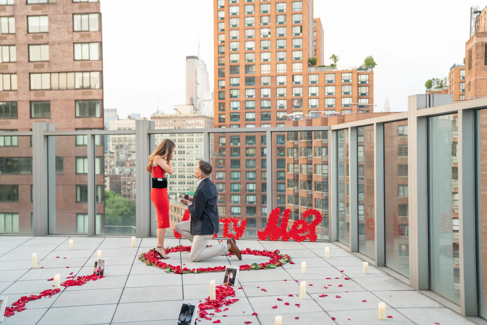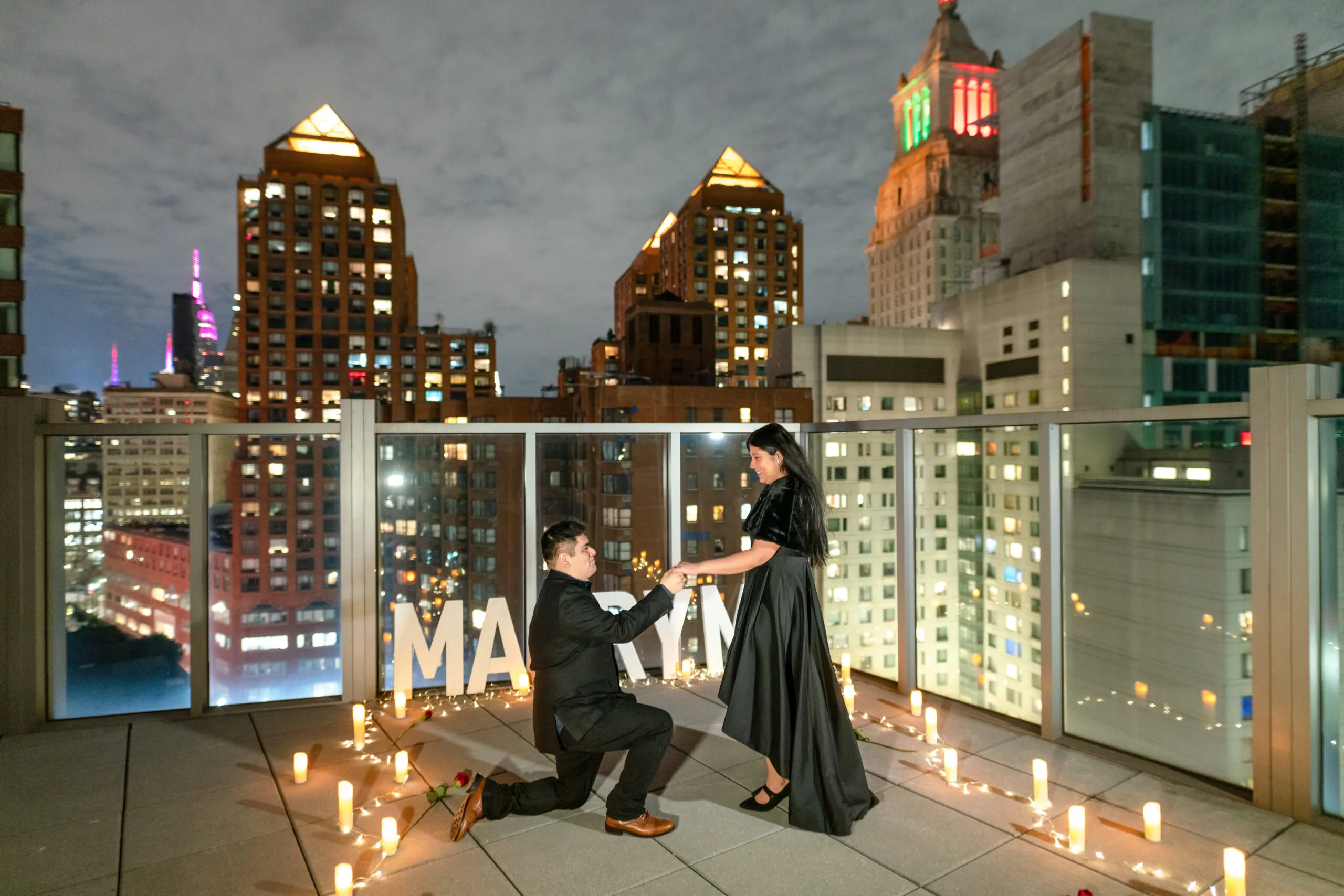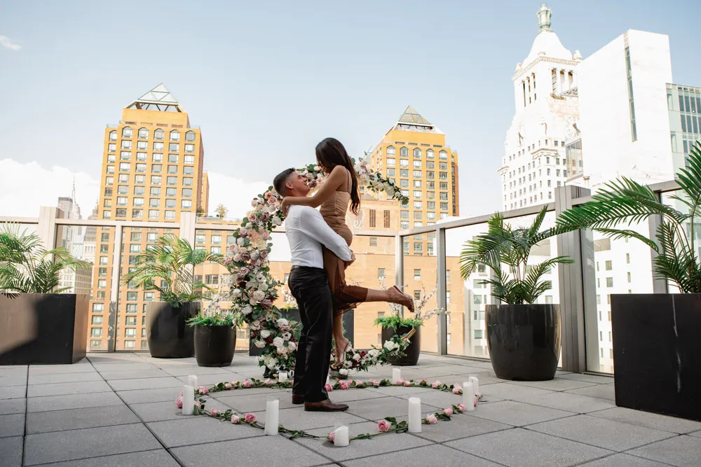 This beautiful city light rooftop is all you need for a romantic engagement. Located in the heart of New York City, the rooftop is facing the Empire State Building and surrounded by the city lights.
