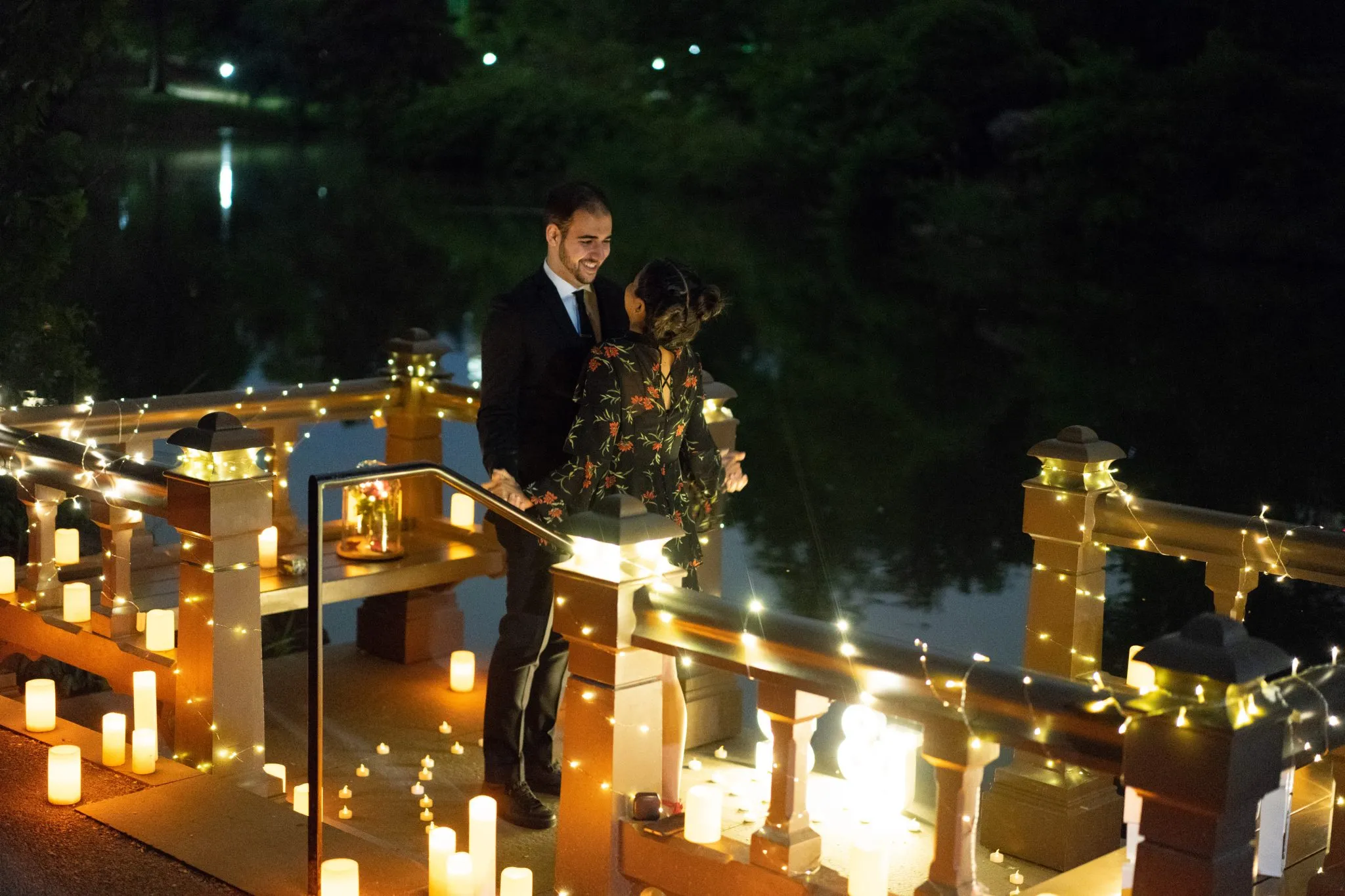 We will Light the Night for you and your partner. Set of Large and small flameless candles ( big and small) and led string lights will be waiting for you by the time you arrive to the secret location. The rest is on you.