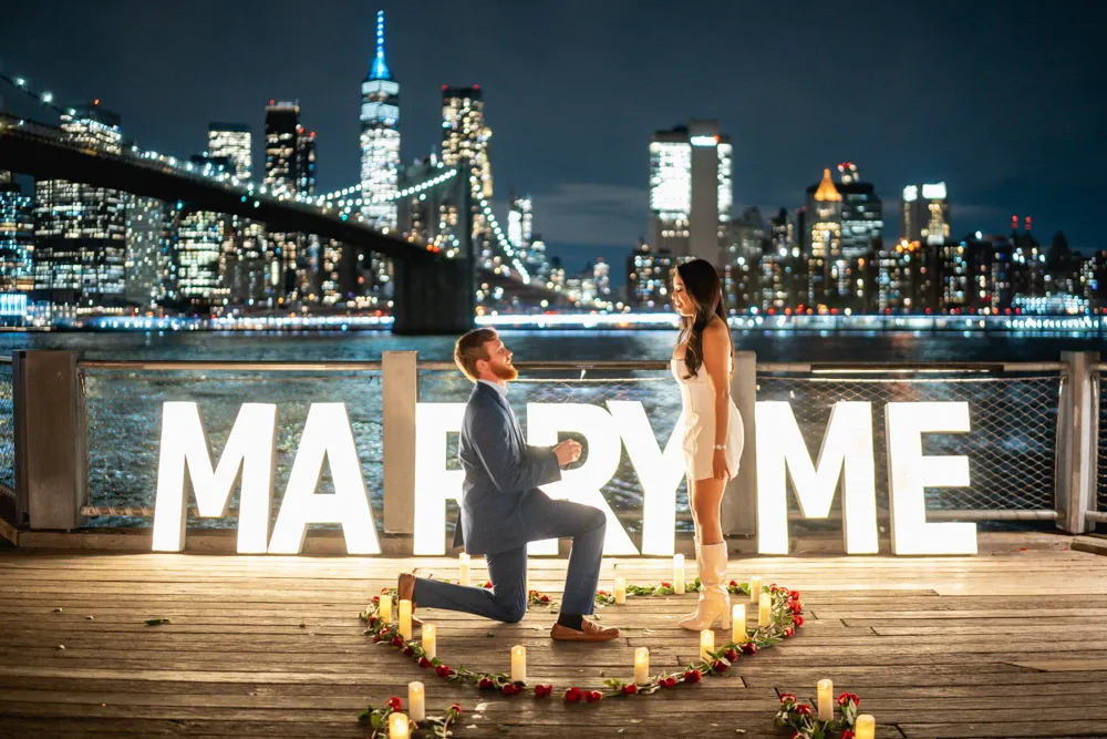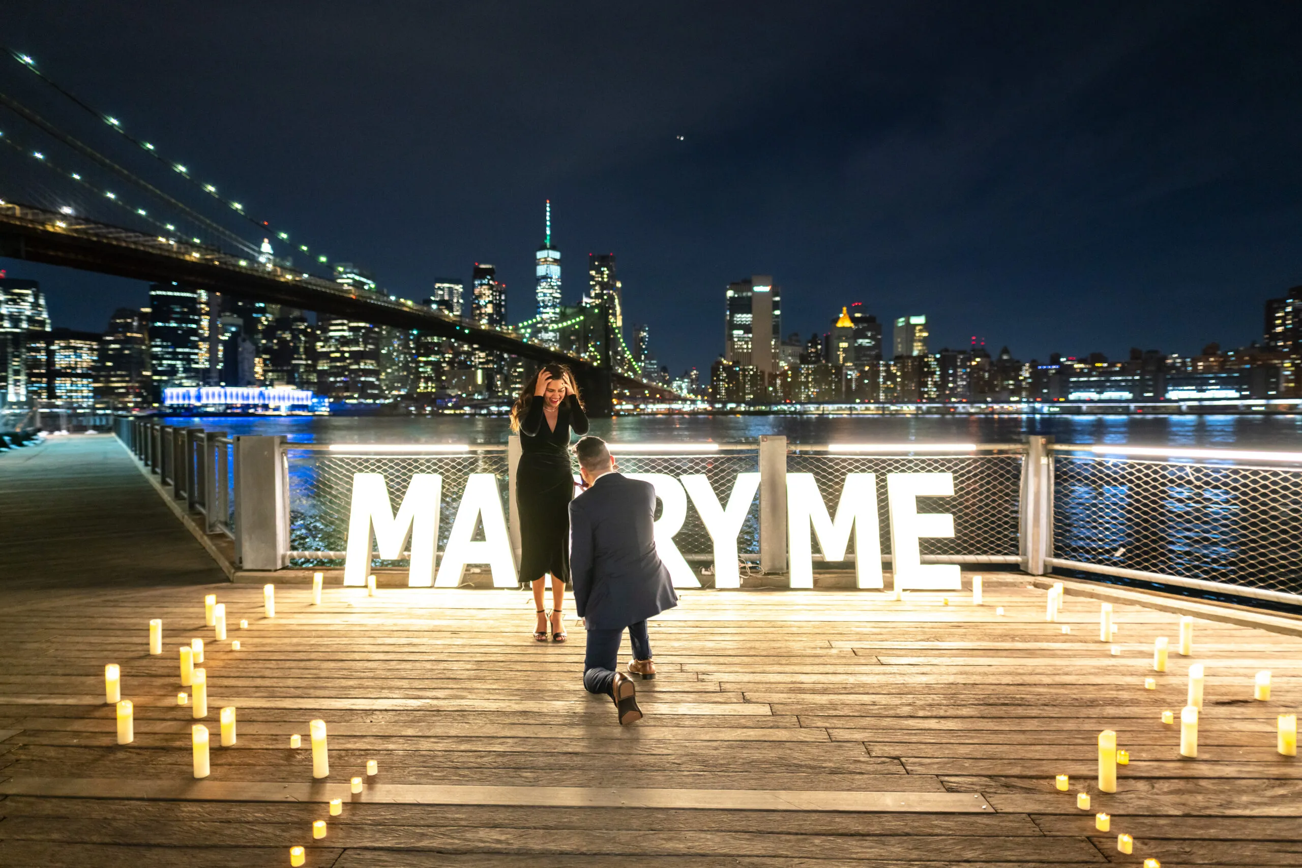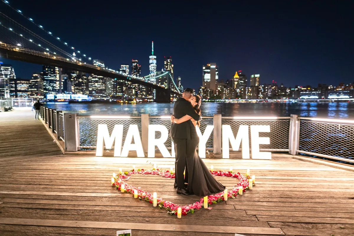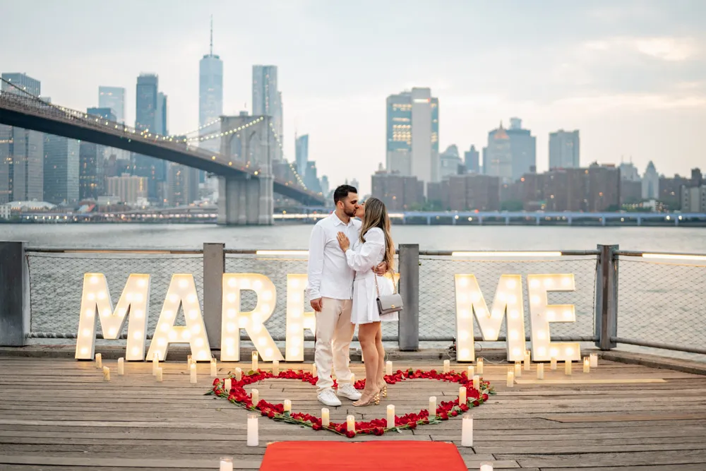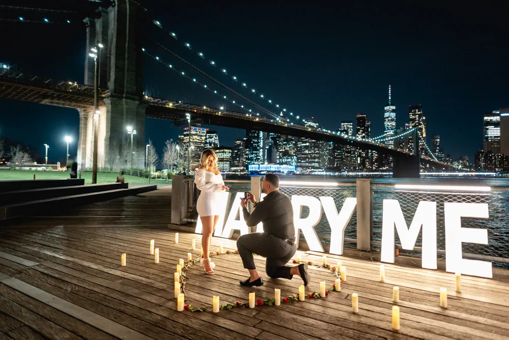 Surprise your partner with this dream proposal in front of Brooklyn Bridge. Please note that we need around 20 days‘ notice to process the permit for this area. Applying for the permit does not guarantee approval. If the desired spot is taken, the proposal will be moved to a different spot within the same area. Please note, edited pictures will be sent in 4-5 business days by dropbox.