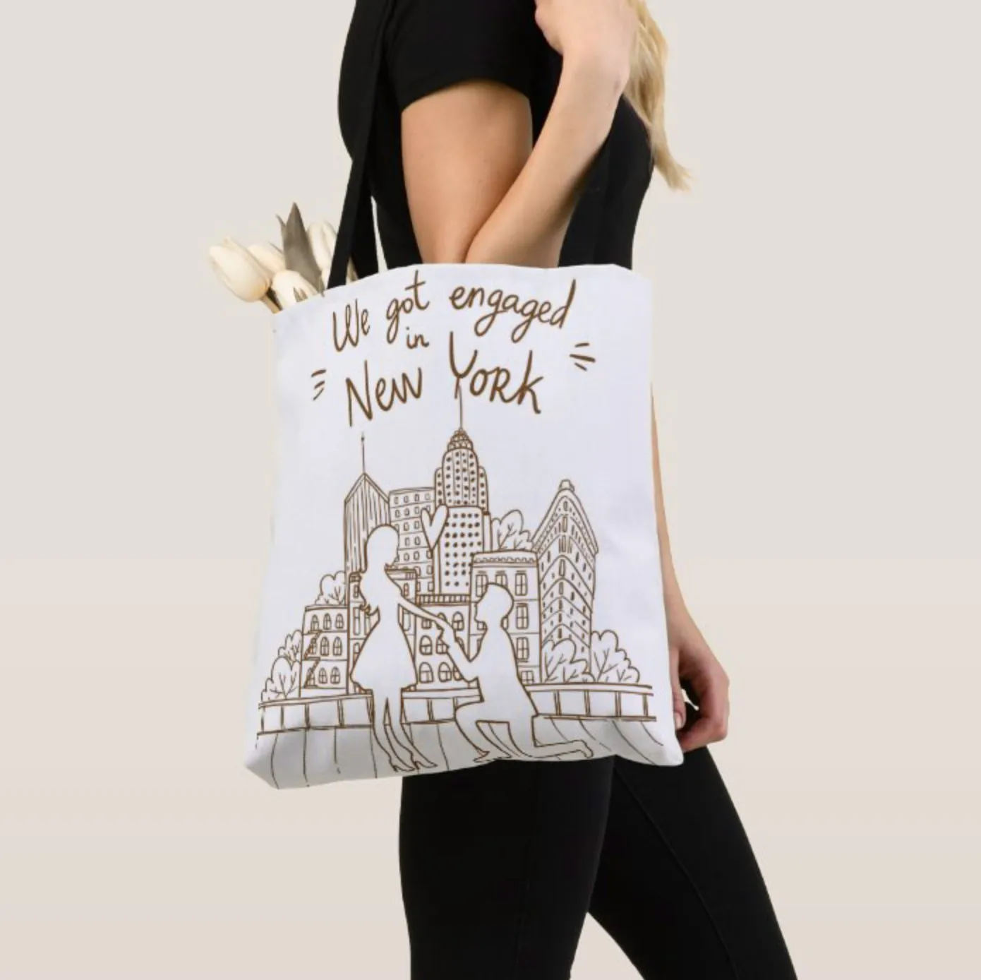 This white stylish bag is ideal for busy city life. Perfect for work and grocery shopping, this bag is rather big and has a generous gusset which allows you to put more in the bag. And of course, this is a fantastic reminder of the best day of your life.