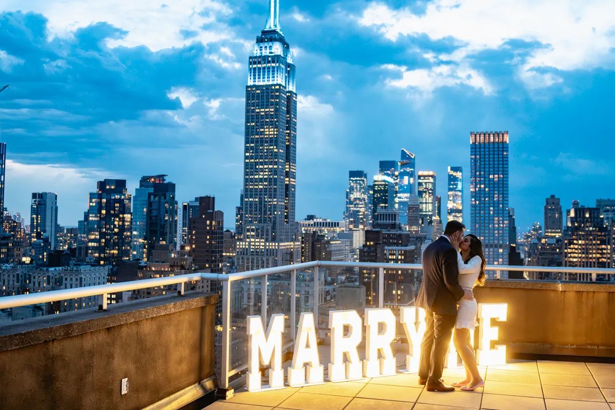 Just the two of us and the whole world. This stunning rooftop is offering breathtaking 360° views of Manhattan and full privacy for your special moment.
