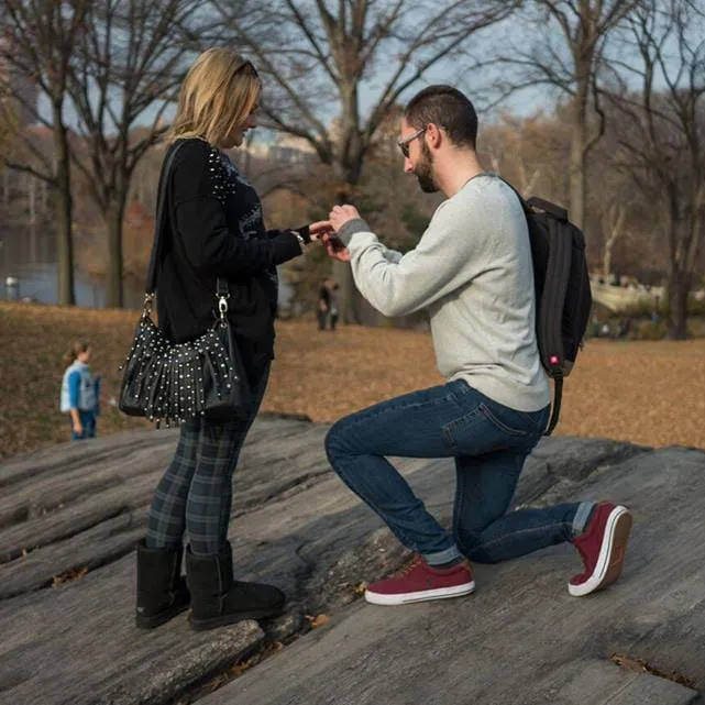 Robert and Victoria have been together for a little over 6 years. The couple came from Essex, east of London, and stayed in New York for a week. “ We have never been here before and it was a dream of ours, so this was an amazing and memorable trip for both of us”, Robert shares. “We stayed at the Doubletree Hilton Hotel, right in Times Square! The view was magical.”For the proposal Robert choose the Central Park, “I chose this particular spot as it overlooks a number of places we love, the Central Park lake, the San Remo building and also the Bow bridge. I took her there just as a stroll through the park, so she didn’t get suspicious!”.