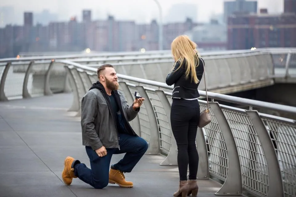 “I choose the spot because we love to come to Brooklyn and try different pizza there, thats sort of our thing. The place for the proposal was near “Paulie Gees” and we went there one time and the view was wonderful. The whole city is on your background and its very private and intimate area.”