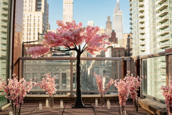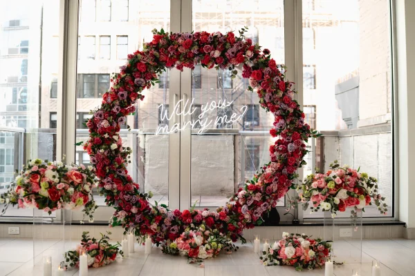 Spring in New York is very unpredictable, that is why we always recommend choosing a location with an indoor room and an outdoor terrace. This private Penthouse would be an ideal spot for an intimate proposal in New York. You can also customize the decorations for your liking. It can be a spring themed proposal decor or statement marquee letters. On the outdoor terrace, we can set up a table with champagne and a musician playing the romantic song of your choice. Ideal for sunset proposals. Our professional photographer will be there to capture the big surprise.
