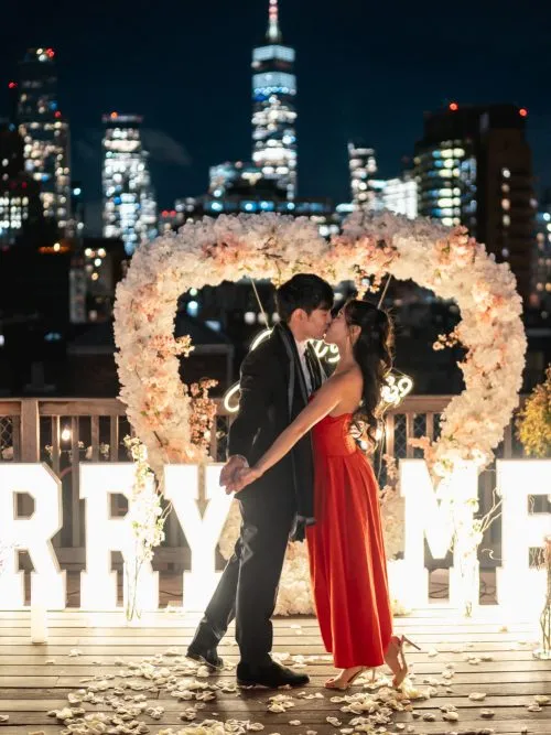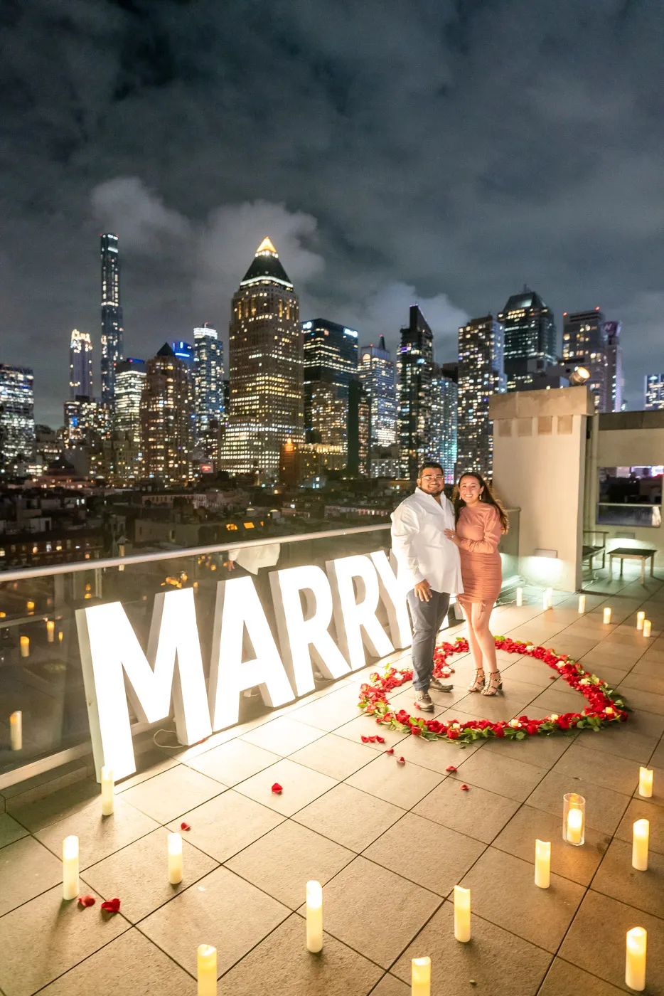 When Santino reached out to us his main request was “private rooftop with the great view” , which was exactly what we are offering. Sparkling Rooftop caught his eye immediately and we started to plan a perfect proposal. The idea was to convince his girlfriend that they are going to the corporate party, so that she wouldn’t suspect anything. We send him a fake email, with the invitation and she had no idea at all till the moment when the door opens to the rooftop and she saw the candles.